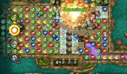 Combining the usual match 3+ game mechanics with tunnelling underground strategy elements is an absolute winner. Each level starts with a pocket of energy (an element) at one side, and an orb at another. Your challenge is blast a tunnel to let the energy flow to the orb and you do this by matching coloured gems in groups of three or more. This blasts away the ground underneath, all the blocks above slide down in an endless stream and you continue on your way. The bigger the chain however the bigger the explosion so when you arrive on ice blocks and boulders, these are best exploded by getting huge chains erupting next to them to take those out too. Each level is timed so after the first ten levels or so you’ll start worrying about making quick progress too.